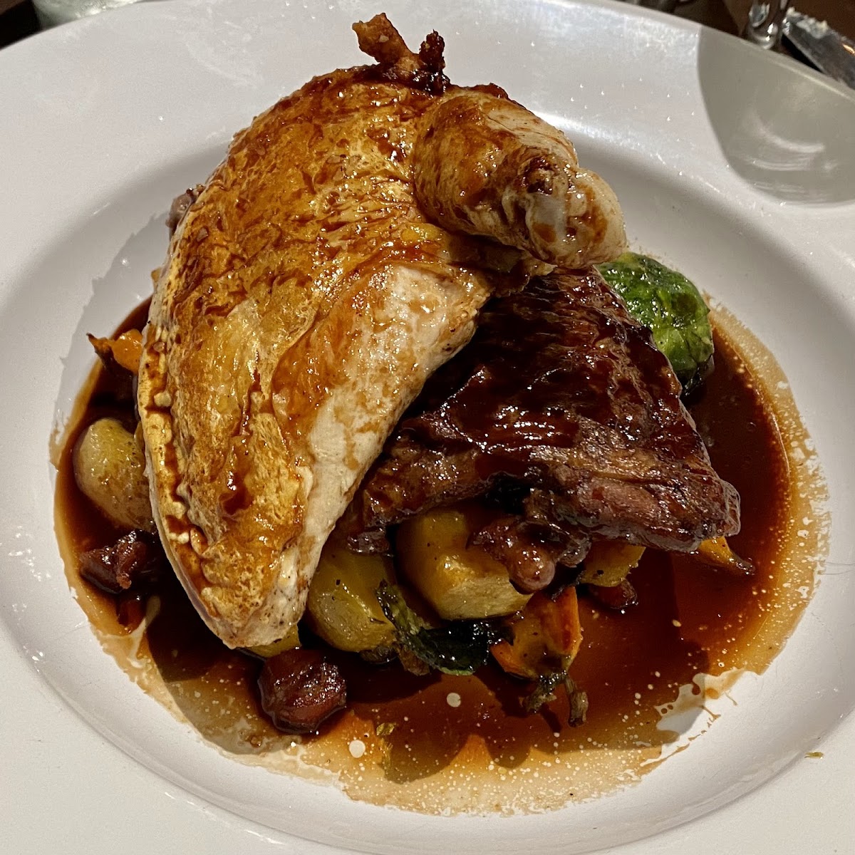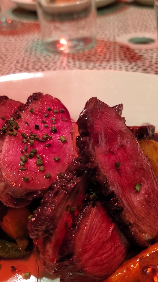 Food was decent! The steak was perfectly cooked and the peppercorn pan sauce was so good with the mashed potatoes. The chicken liver salad was great as well. The breading on the chicken liver with the bacon vinaigrette was a great combination. The half shell oysters were nothing special but still quite tasty. The only disappointment was the rack of lamb. It weirdly didn't have enough flavor but it was still ok. The pot de creme could have been amazing but it was a bit on the salty side. Would go back for the service though. They were super nice.